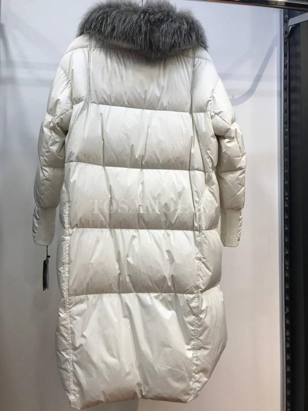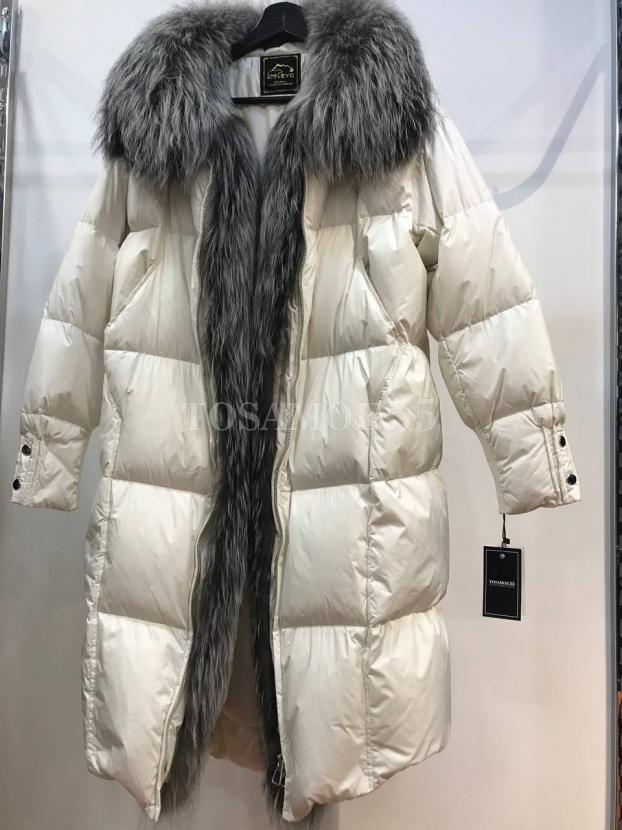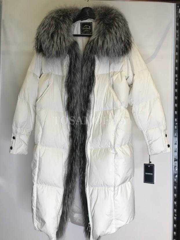 Длинный белый пуховик с чернобуркой